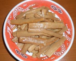 一目で違いがわかるところは均質な仕上がりぐあいでしょう。ふっくらと水分を含んだ戻り具合が皆同じようです。今現在店にあるメンマは十分に戻りきっていな物がいくらかの割合で混ざっています。おそらく等級の異なる物を混ぜ合わせているのでしょう。