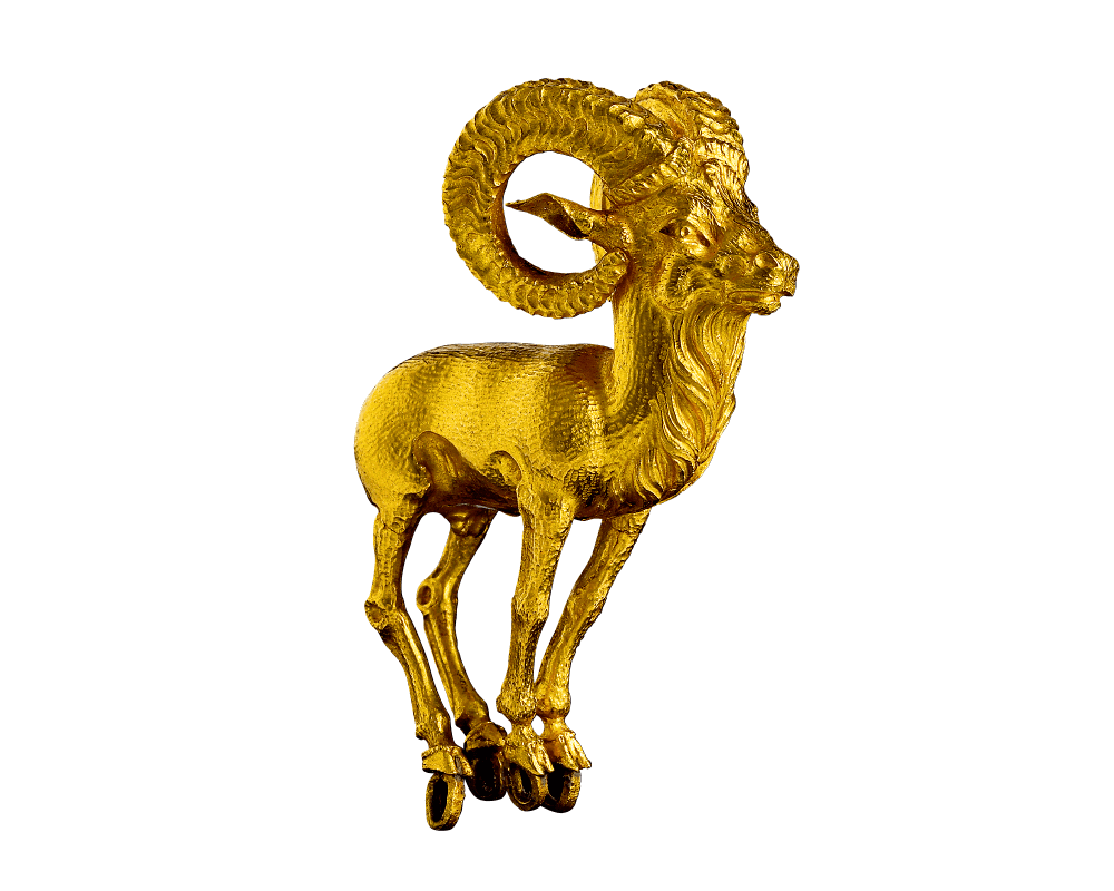 次に紀元1世紀前後パルティアの遊牧民サカ族の有力者の墓から発掘された品々。スキタイの装飾品との類似していますが民族的にもその筋だそうです。ラビスラズリと合わされた見事な金細工です。